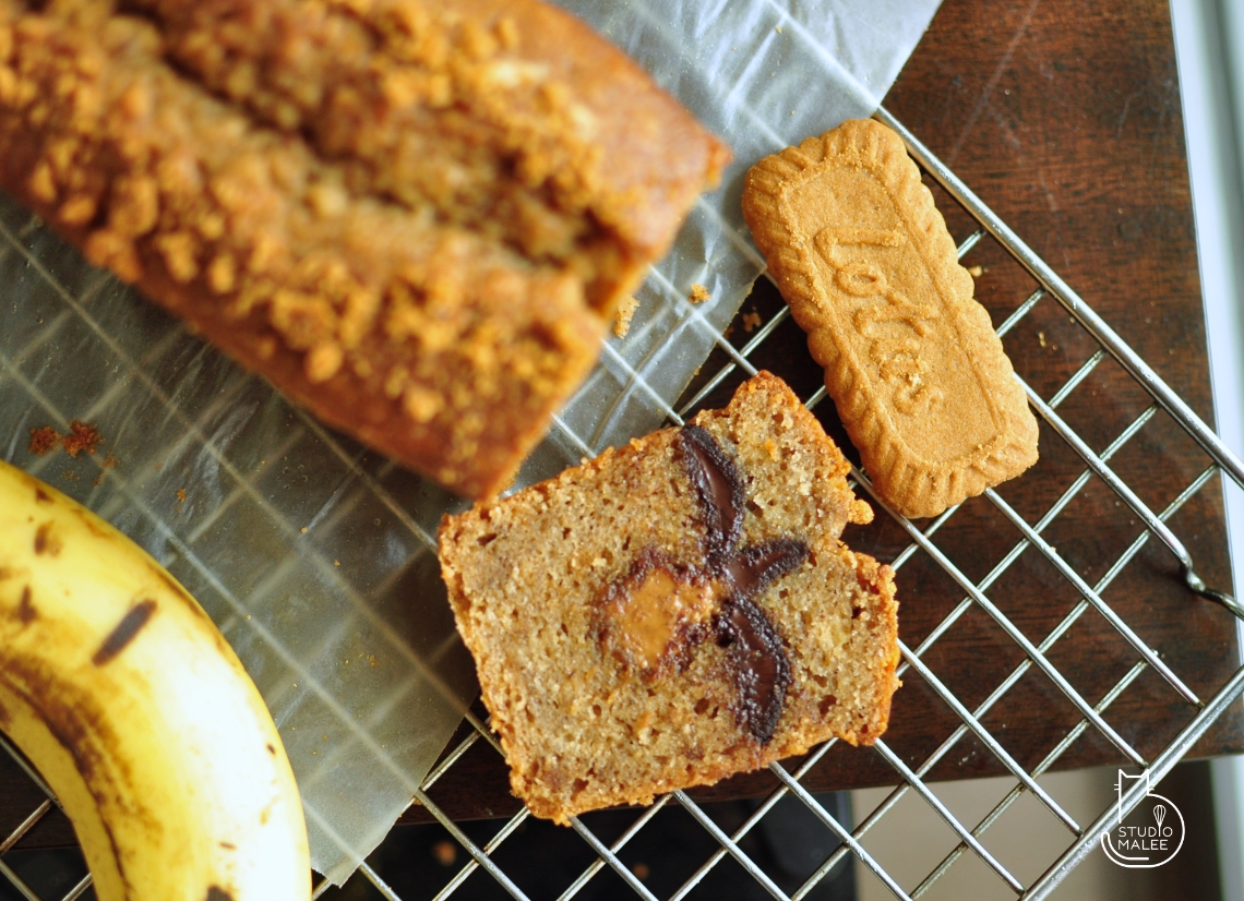 เค้กกล้วยหอมบิสคอฟ เนื้อขนมนุ่ม ฉ่ำ หอมเครื่องเทศเบาๆ สอดไส้ด้วยบิสคอฟสเปรดและดาร์คช็อกโกแลต ที่ผสมผสานกันอย่างลงตัว รสชาติอร่อย ไม่หวานจัด
