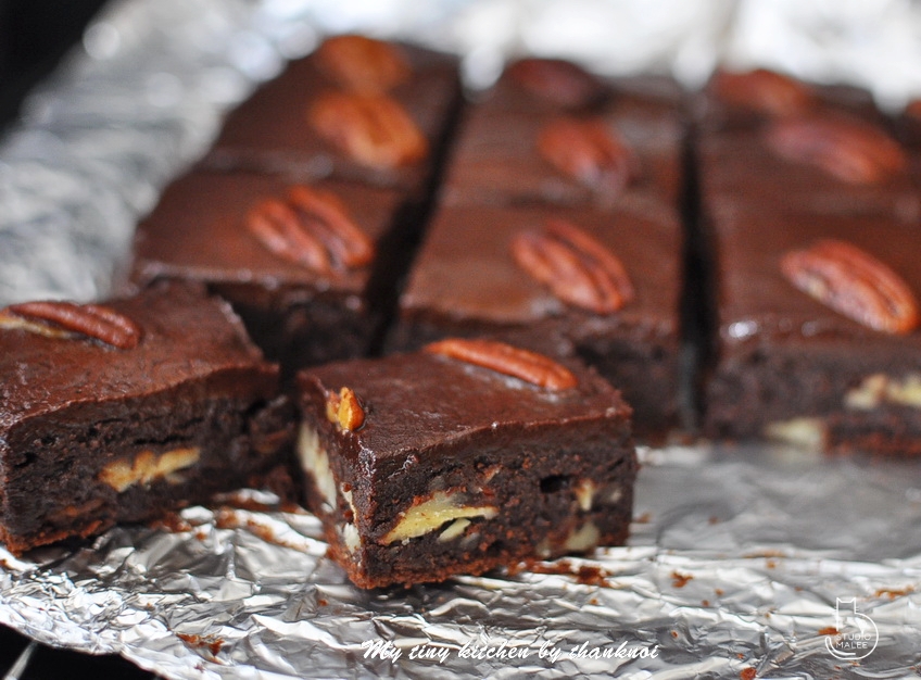 บราวนี่เนื้อฟัดจ์รสช็อกโกแลตเข้มข้นราดด้วยช็อกโกแลตกานาชที่ทั้งเข้มข้นและละมุน เพิ่มทั้งเนื้อสัมผัสและความเข้มข้นของช็อกโกแลต สำหรับ chocolate lover