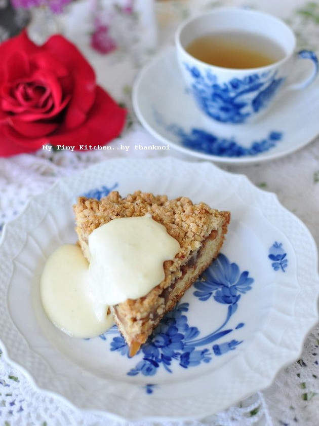 Apple crumble cake ขนมสุดคลาสสิคที่ทำกินเองที่บ้านก็อร่อยได้และง่ายมากๆ ขนมหอม ไม่หวานจัด เสิร์ฟพร้อม homemade vanilla sauce