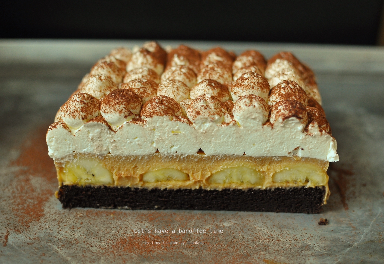 บานอฟฟีสูตรพิเศษที่ฐานเป็นบราวนีเค้กรสชาติเข้มข้น คาราเมลสูตรพิเศษที่มีส่วนผสมของ mascapone cheese ที่หอม หวาน มัน อร่อยมากและไม่หวานจัด