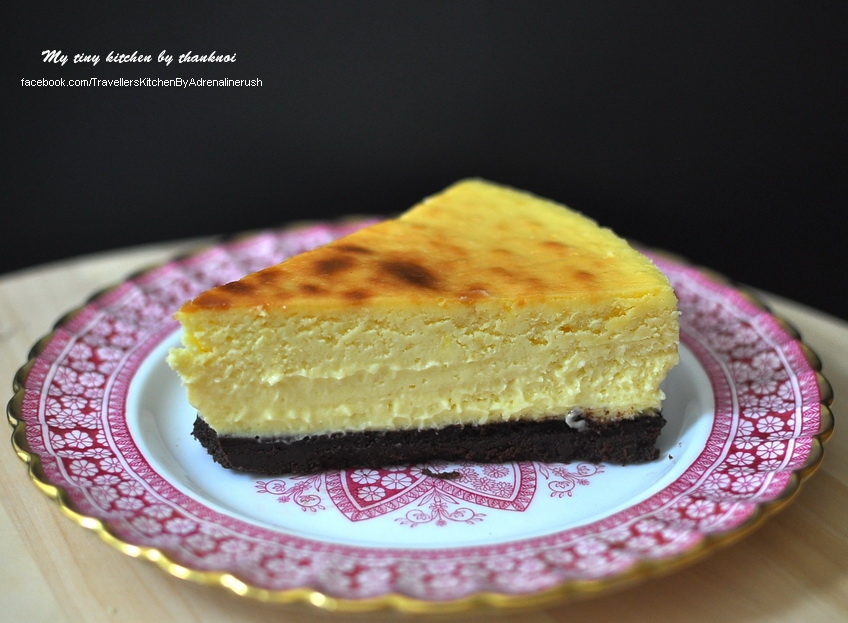 ชีสเค้กแบบอบ New York Style เนื้อนุ่ม ริช หอมมะม่วงและเสาวรส หวานอมเปรี้ยว ตัดกับฐานกรอบๆของแครกเกอร์รสช็อกโกแลต อร่อยลงตัว